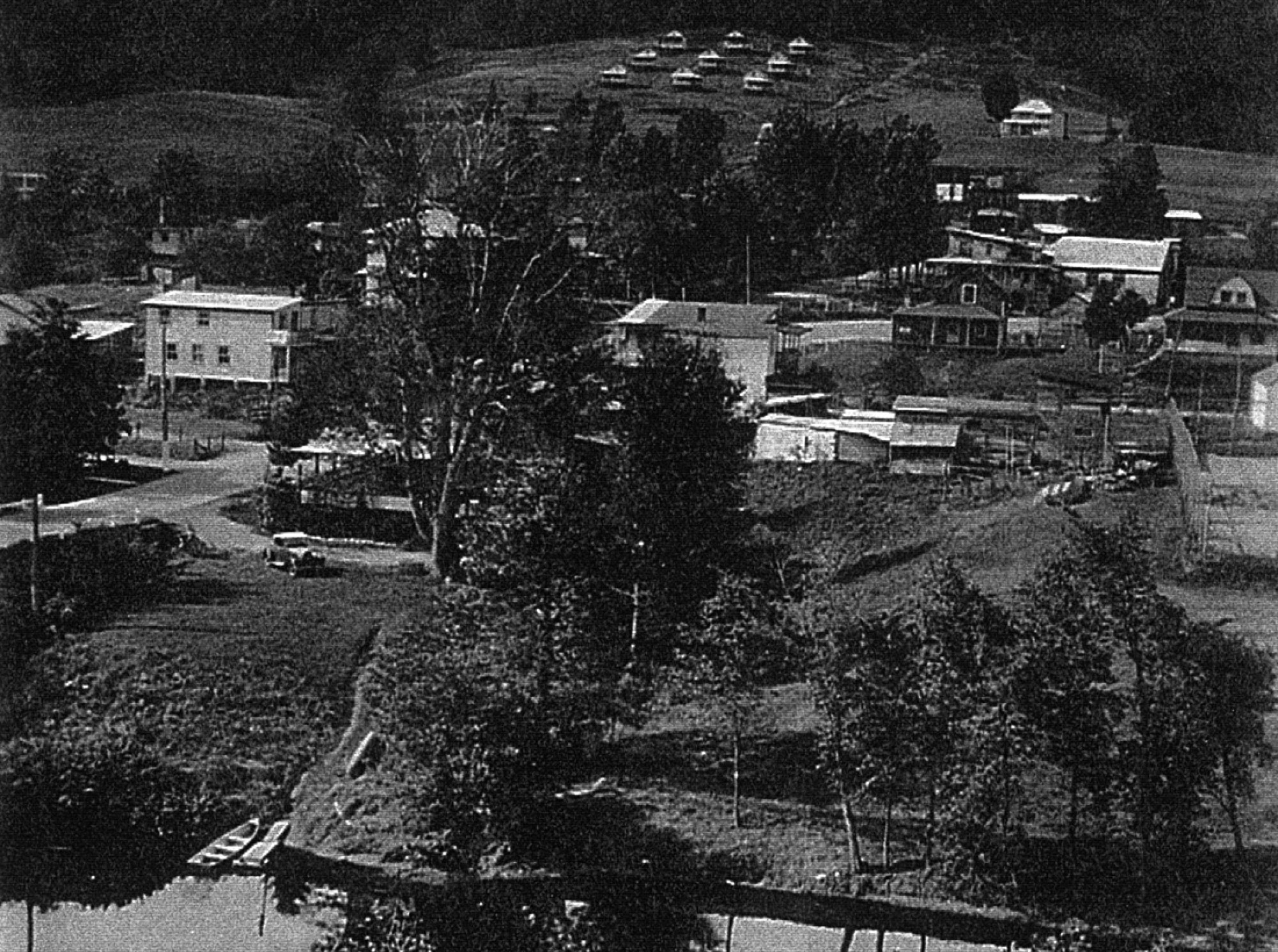 Henry Bishinsky est propriétaire d’un de ces commerces, voisin du Riverside House, à gauche en sortant du pont. Il s’agit d'un mélange entre un magasin général, offrant une grande quantité de fruits appréciés par la clientèle, un restaurant et une salle de danse, très fréquentée. Juste à côté se trouve une maison verte à deux étages, dont le premier sert de maison à la famille Bishinsky alors qu’au second, des chambres sont louées aux touristes. La rue Gilbert (prononcée à l’anglaise guilbeurte) sépare le commerce de l’hôtel Riverside, plus près de Shawbridge, et mène à quelques chalets sur pilotis situés sur le bord de la rivière. Emportés lors d’une crue inhabituellement, ces derniers ont été retrouvés dans un piteux état dans un méandre sur la rivière du Nord.