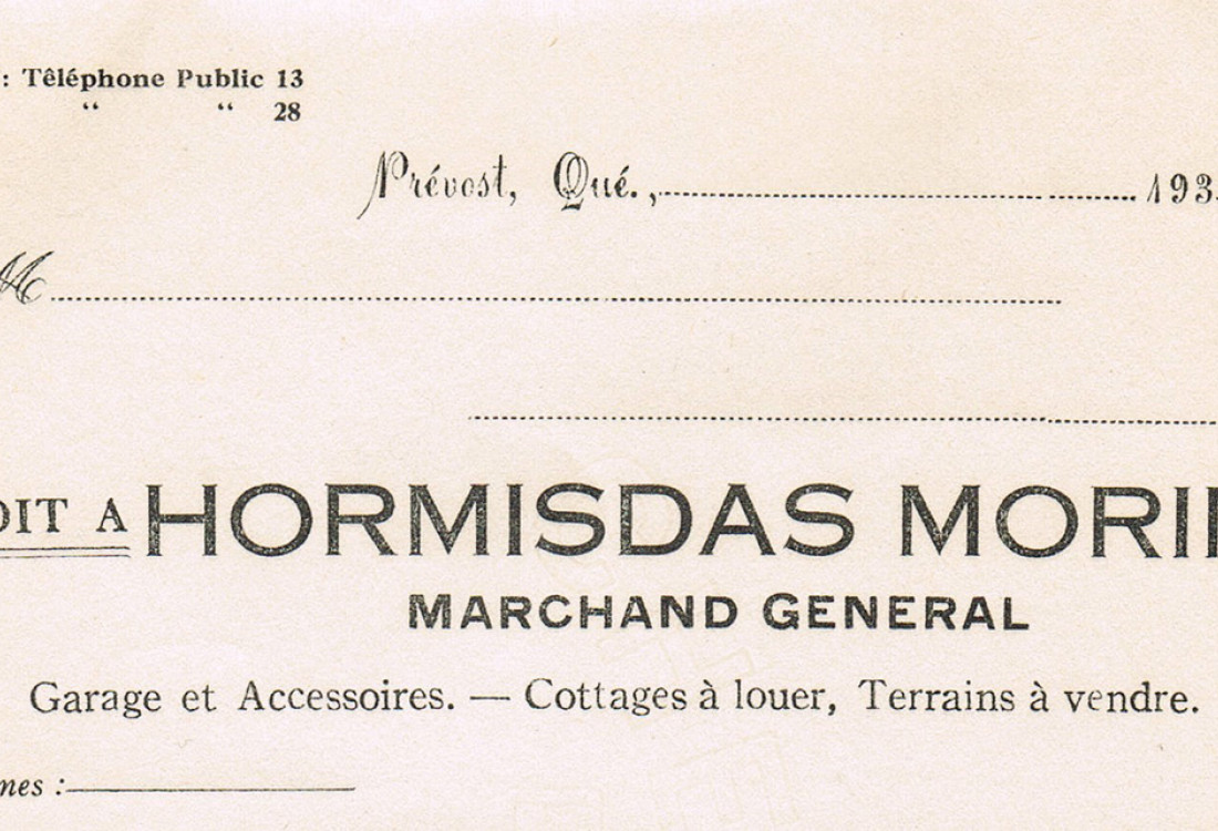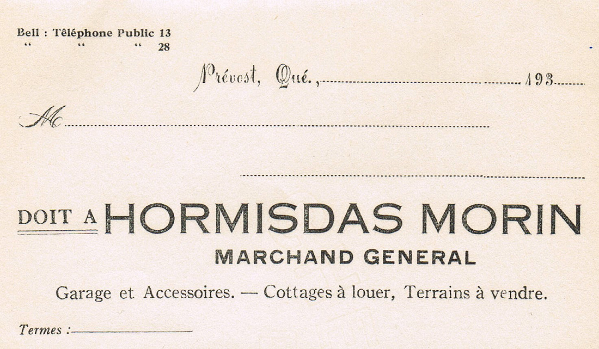Au début du 20e siècle, Hormisdas Morin construit un magasin général au croisement de l’ancienne route 11 (aujourd’hui la rue Victor) et de la rue Louis-Morin. Les cours des enfants s’y déroulent avant qu’une école ne soit construite en 1930 dans le village. Le magasin est aussi utilisé pour des réunions et des débats politiques, notamment lors des élections. Les fils d’Hormisdas, Émilien et Rosario, y ont travaillé comme commis. Une forge est annexée afin de ferrer les chevaux. Avec la montée de l’automobile vers la fin des années 1920, celle-ci est transformée en garage. En 1947, le nouveau tracé de la route nationale se déplace vers Shawbridge, faisant baisser l’achalandage dans les commerces du secteur. La famille décide alors de fermer le magasin général. Le garage continue toutefois ses activités jusque vers 1980.