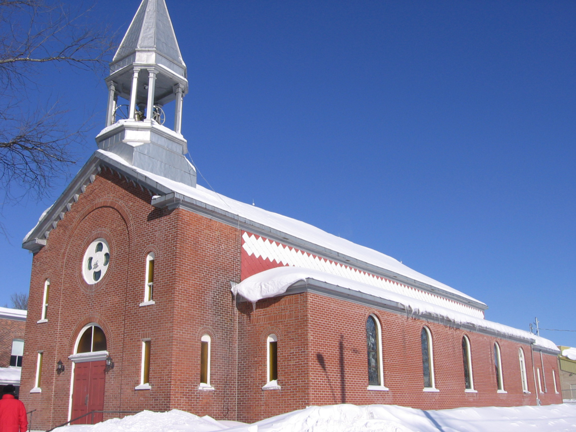 Dès le début des travaux en 1926, quelques retards créent de nouvelles controverses, mais l’entrepreneur J. Théo Levasseur, de Montréal, livre en 1927 l’église actuelle et un presbytère, jusque-là localisé dans l’ancien garage d’Émile Contant. D’après Bertrand Néron, longtemps marguillier, les travailleurs de cette construction recevaient 0,45 $ l’heure pour quarante heures de travail en six jours.