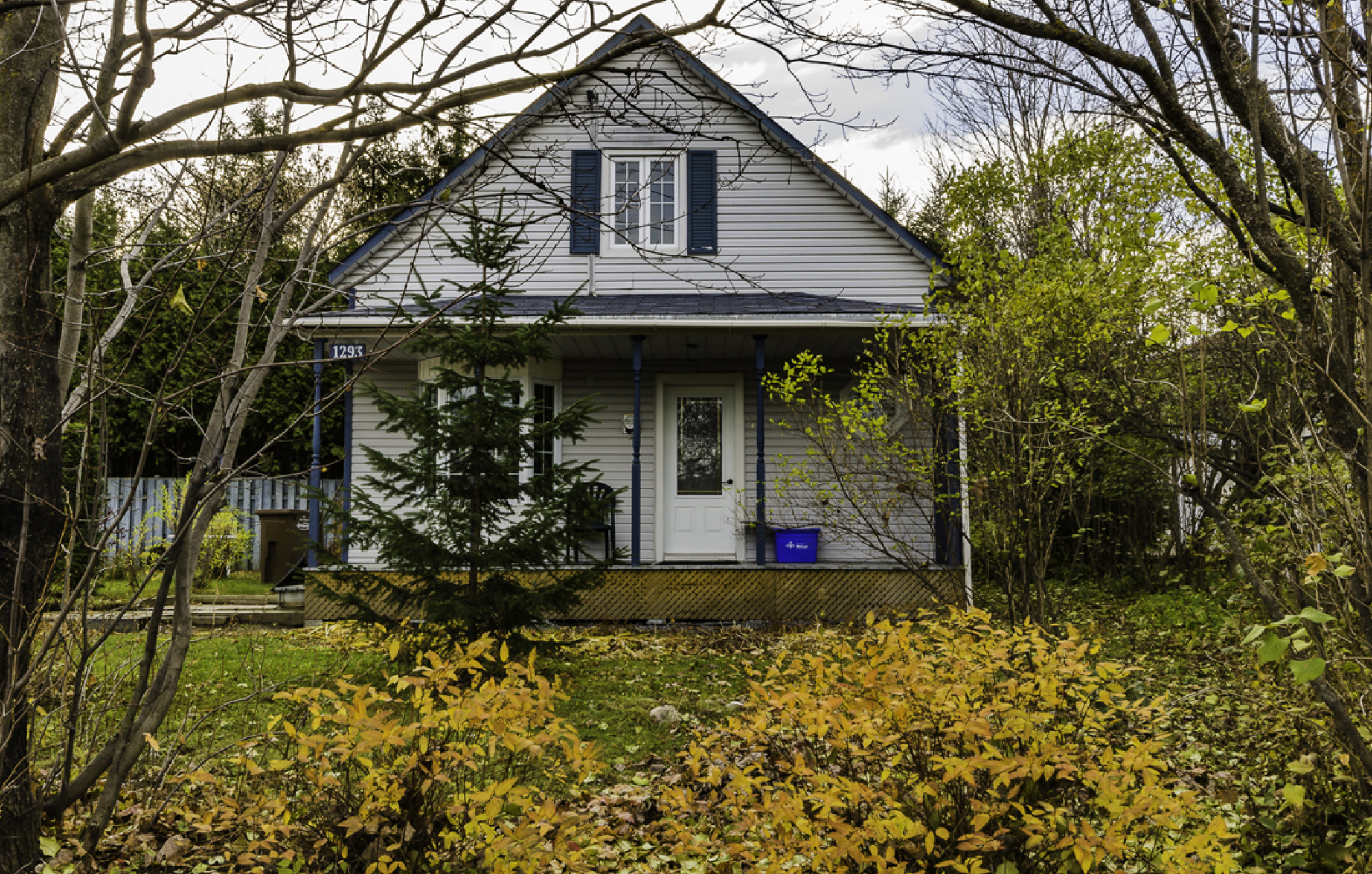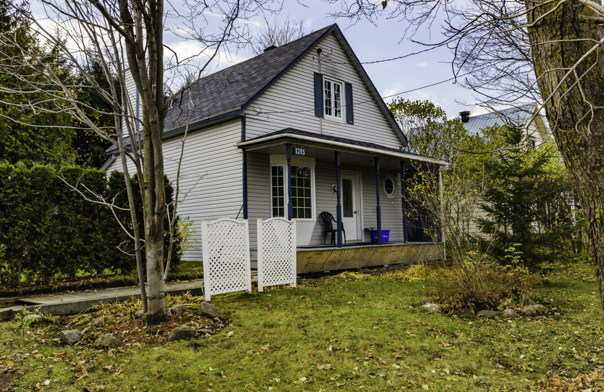Contrairement au style vernaculaire nord-américain, le toit des maisons d’inspiration traditionnelle québécoise, dont cette résidence s’apparente, ne se prolonge pas au-delà des murs. Leur caractéristique commune est le bâti posé sur une fondation très basse, jadis en bois, avec parfois un vide sanitaire. Alors que la maison vernaculaire varie de la petite maison de colonisation au vaste cottage, la maison québécoise gagne en surface avec l’ajout d’un étage. Si la résidence du 1293 rue Louis-Morin s’inspire du modèle québécois, la galerie à l’auvent détaché du toit relève du style vernaculaire, alors que la fenêtre en oriel, à gauche, et l’ouverture hexagonale en oculus, à droite, réfèrent au style Queen Ann.