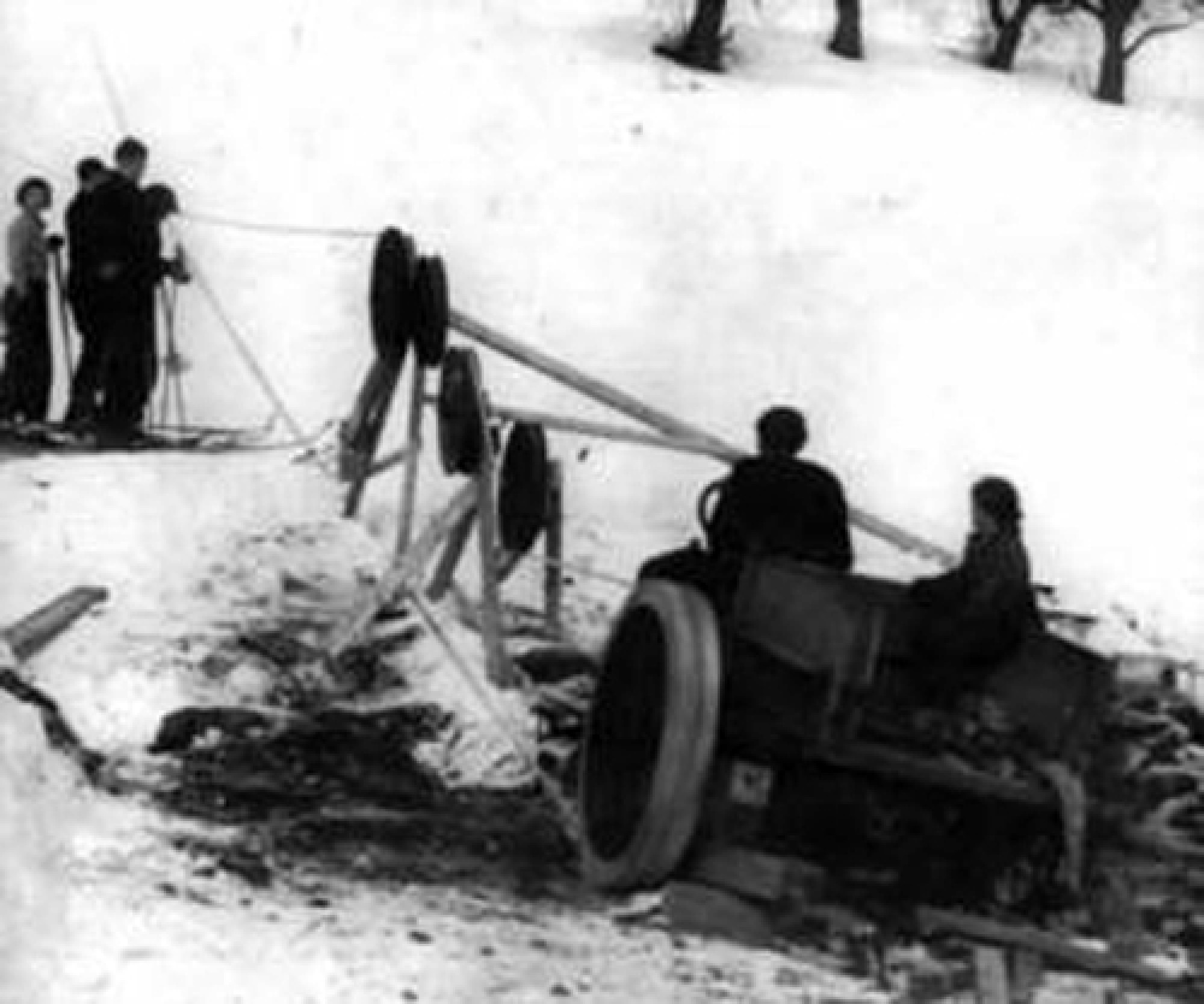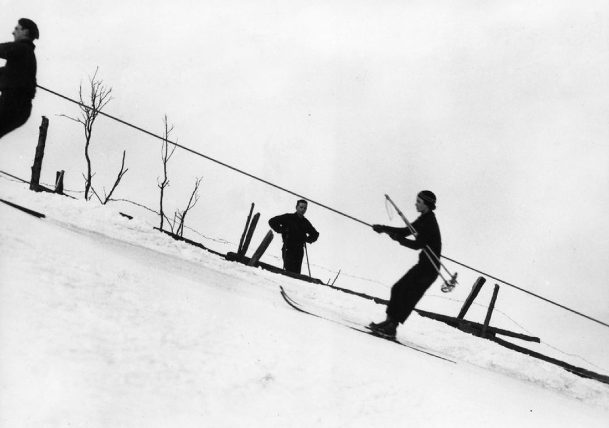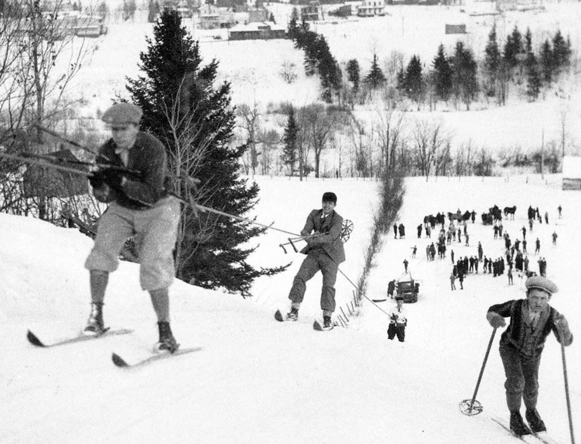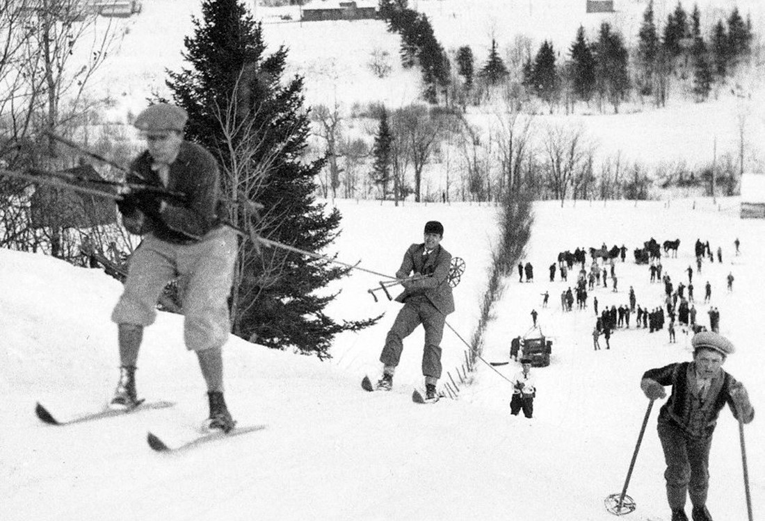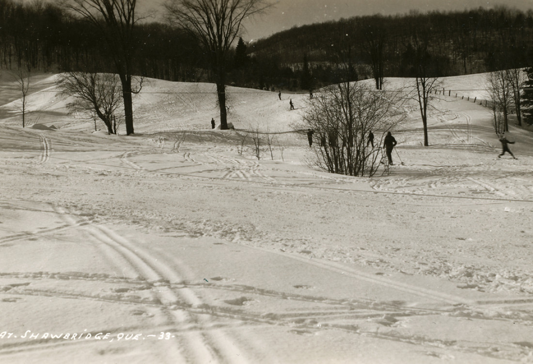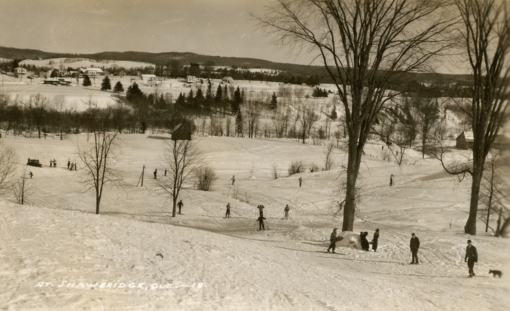 En 1933, Alex Foster installe une voiture taxi comme remonte-pente temporaire sur la terre de Ménassippe Richer, voisin de la terre de Gordon Shaw. Les installations sont d’abord minimes, pas du tout semblables aux chalets et aux chaises confortables des stations de ski actuelles. Sur les photographies, il est possible de remarquer la crispation des skieurs agrippant le câble toujours mouillé et vrillant, de telle sorte qu’il use immanquablement les mitaines ou, pire encore, enroule les foulards au risque d’étrangler l’utilisateur.