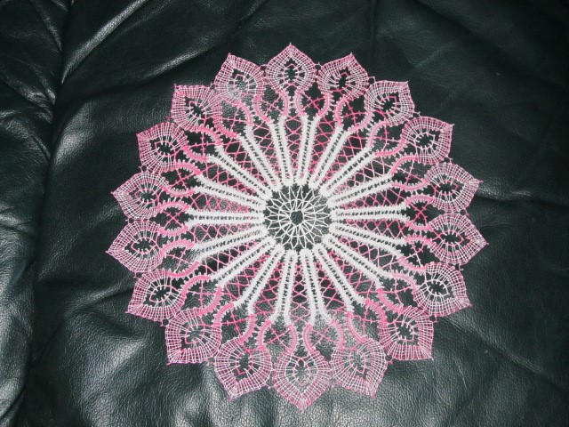Retraitée, je m'adonne à mes hobbys qui sont : la dentelle aux fuseaux, la broderie et la courtepointe.